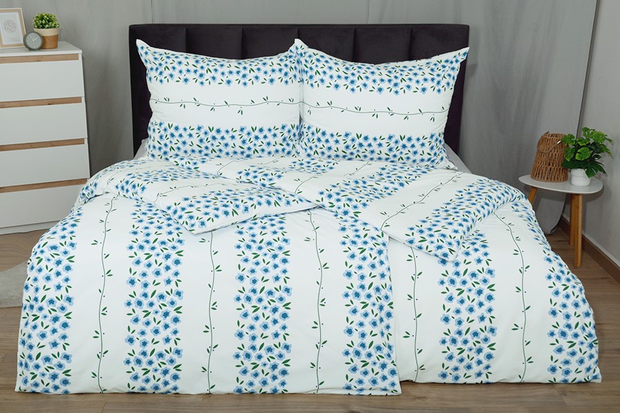 Főleg új, modern ágyneműinkhez használjuk, ahol nemcsak a kényelmet, hanem az elegáns megjelenést is értékelni fogja. Fehér alapon készült ágyneműhuzat, türkiz és zöld árnyalatú virág- és levélmotívummal díszítve, finom csíkokban elrendezve. Időtlen design, természetes frissességgel és eleganciával. A mikroszál antibakteriális, és a legjobb választás allergiások számára. Az ágyneműhuzat praktikus cipzárral záródik. Az ágyneműhuzat tökéletesen illeszthető a kínálatunkban található jersey lepedőkkel, amely számos színben kapható.
