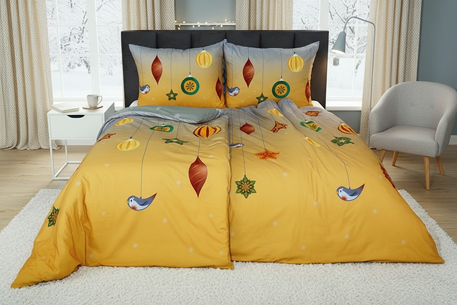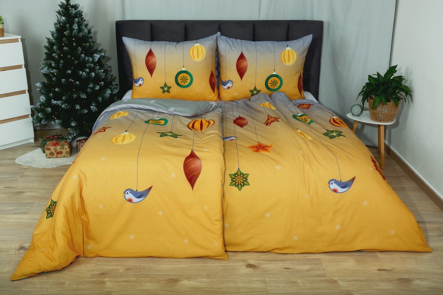 Az EXCLUSIVE pamut ágyneműhuzaton egyágyasnak készültek és kétoldalas motívummal rendelkeznek. Az ágynemű egyik oldala meleg narancssárga árnyalatokban pompázik, karácsonyi díszekkel, csillagokkal és madarakkal, amelyek ünnepi hangulatot teremtenek. A másik oldala elegáns szürke színű, visszafogott hópehelymintával, így a hálószoba megjelenését hangulat szerint könnyedén változtathatja. Az ágyneműhuzat exkluzív pamutból készült, minőségi anyagból, amelyet puhasága, erőssége és minimális gyűrődése jellemez. Ez a modern pamutfeldolgozás lágyságot és kiváló nedvszívó képességet kölcsönöz. Minden bizonnyal értékelni fogja a tökéletes színtartósságot, és a nagyobb kopásállóságnak köszönhetően a hosszú élettartamot is. Ebben az ágyneműben egyszerűen a legjobb álmát fogja aludni. Az ágyneműhuzat cipzáras kapcsolással rendelkezik. Az ágyat egy színbe hangolhatja ha vásárol egy frotté vagy jersey lepedőt azonos színben.