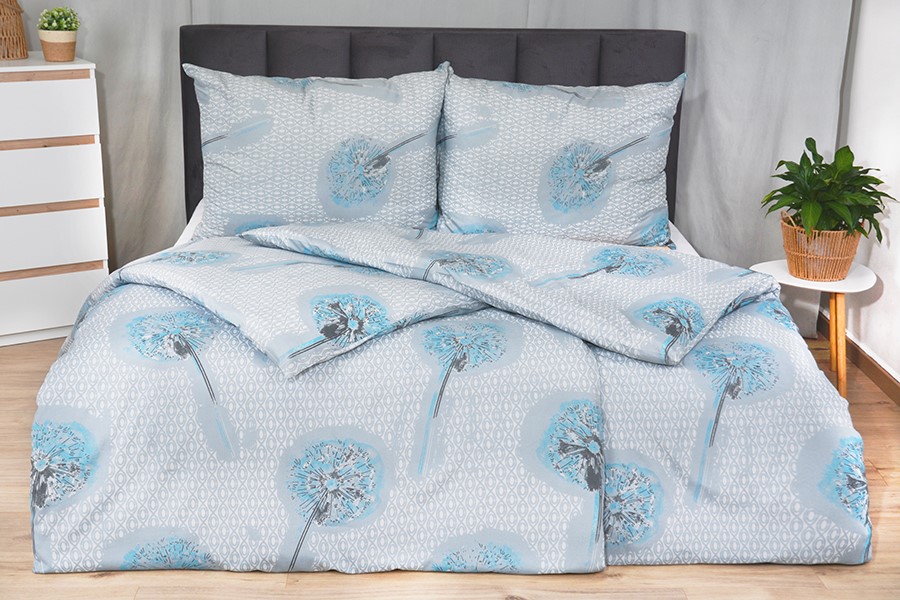 4 részes pamut ágyneműhuzatot szürke alapon finom türkiz és szürke árnyalatú pitypang motívummal rendelkezik, amelyet finom szürke díszítések egészítenek ki. Az ágyneműhuzat a kedvelt pamutból BASIC készült, amelyet kiváló nedvszívó képesség és légáteresztő képesség jellemez. A könnyű mikroszálas keverék sok praktikus előnnyel jár. Garantálja az anyag puhaságát, nagyobb gyűrődésállóságát és színtartósságát, így a színek élénkek maradnak még sok mosás után is. Bármely évszakra alkalmas. Az ágyneműhuzat villámzárral kapcsolással rendelkezik. Az ágyat egy színbe hangolhatja ha vásárol egy frotté vagy jersey lepedőt azonos színben.